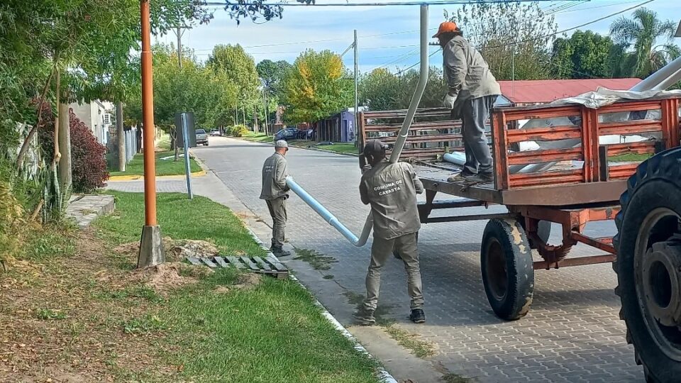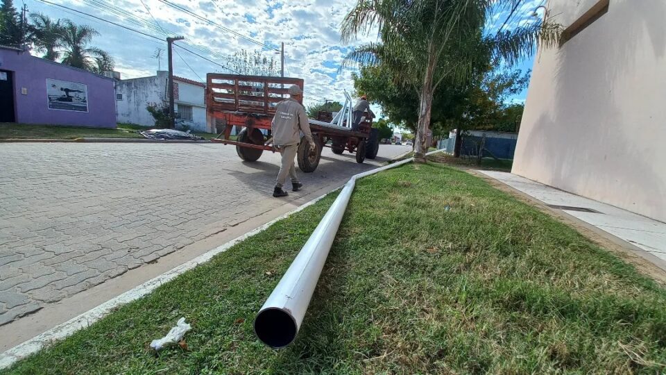 Hoy comenzamos la instalación de columnas para la nueva obra de iluminación pública en diferentes sectores de nuestra localidad.