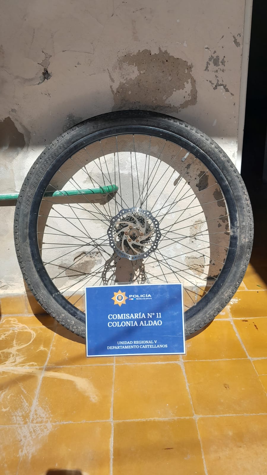 cuneta, una rueda perteneciente a la bicicleta que había sido sustraída