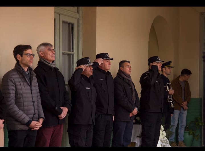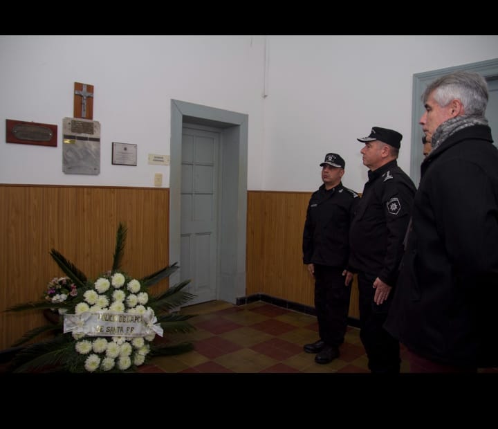 Se realizaron ofrendas florales al pie del plaquetario y minuto de silencio. Presidió la ceremonia el señor Jefe de Policía Director General Licenciado LUIS PABLO MARTIN MALDONADO, acompañado por el Asesor Técnico de la Secretaria de Seguridad- Inspector General Julio Ángel Romano- , el Subsecretario de Monitoreo de programas estratégicos del Ministerio de Justicia y Seguridad- Abogado Juan Manuel Musuruana, el Sr. Subjefe de Policía de Provincia Director General Licenciado Daniel Fernando Filchel, el Jefe del Departamento Relaciones Policiales Director de Policía Licenciado Carlos Pagano, la Dra. María Victoria Weiss Ackerley, presidente de la comuna de la ciudad de Helvecia, el segundo jefe UR VII -Subdirector de Policía Jorge Ferreyra. Además estuvieron presentes, personal de la Plana Mayor, personal de la Policía de Investigaciones GARAY , autoridades del resto de las comunas que componen el departamento y el cura párroco NICOLAS CARREL de la Parroquia Nuestra Señora del Carmen.
