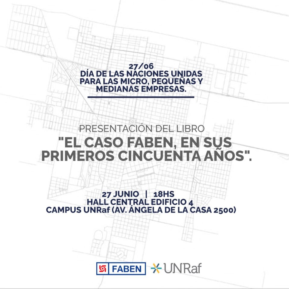 La Universidad Nacional de Rafaela (UNRaf) publicará el título «El caso FABEN, en sus primeros cincuenta años». El evento se llevará a cabo el jueves 27 de junio a las 18 horas en el Edificio 4 del Campus Universitario (Av. Ángela de la Casa 2500). Sus autores son el Dr. Rubén Ascúa junto al Mg. Victor Cogno y forma parte del catálogo de la editorial universitaria, Ediciones UNRaf.