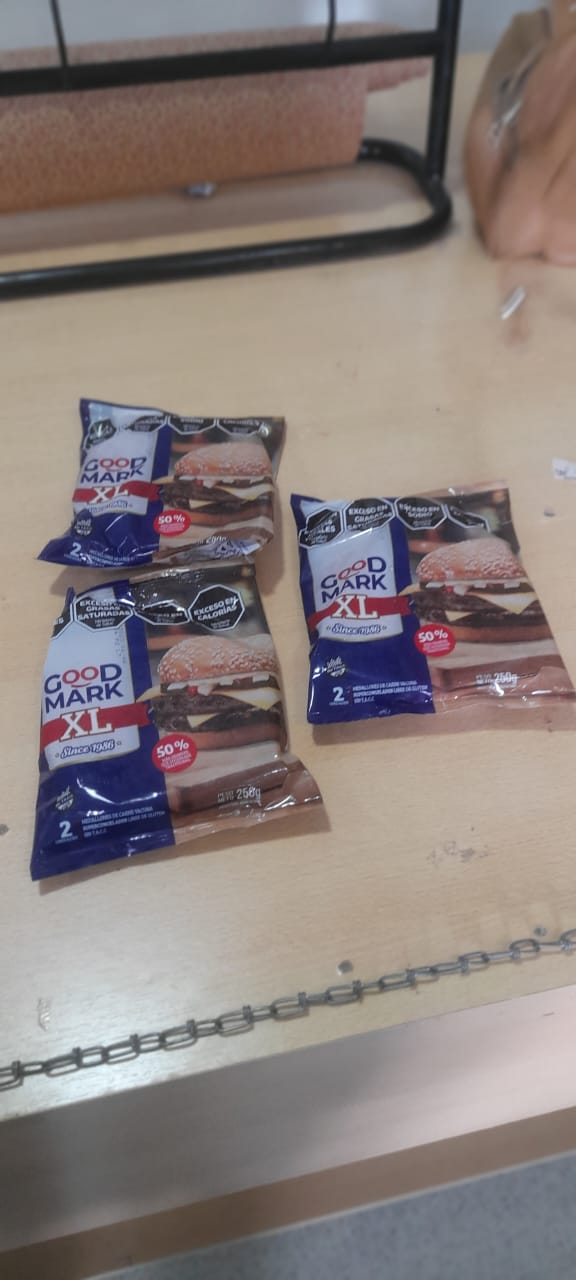 de la mujer, una pareja había escondido tres paquetes de hamburguesas