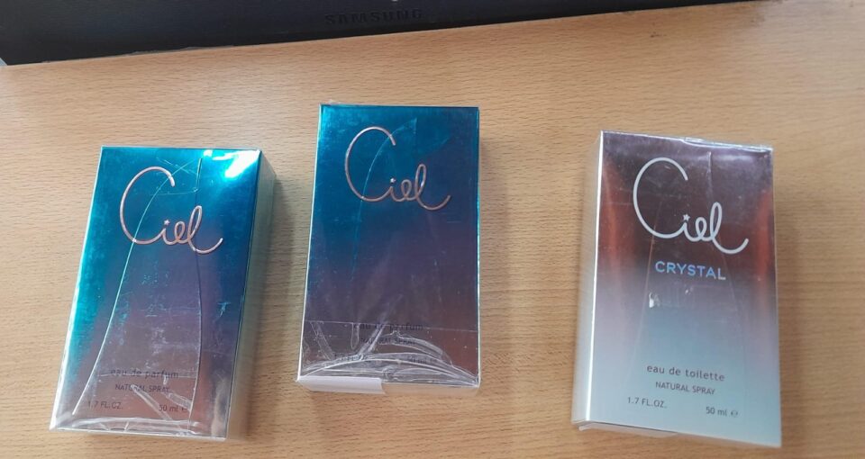 cajas de perfumes en una faja que llevaba en el abdomen, lo que