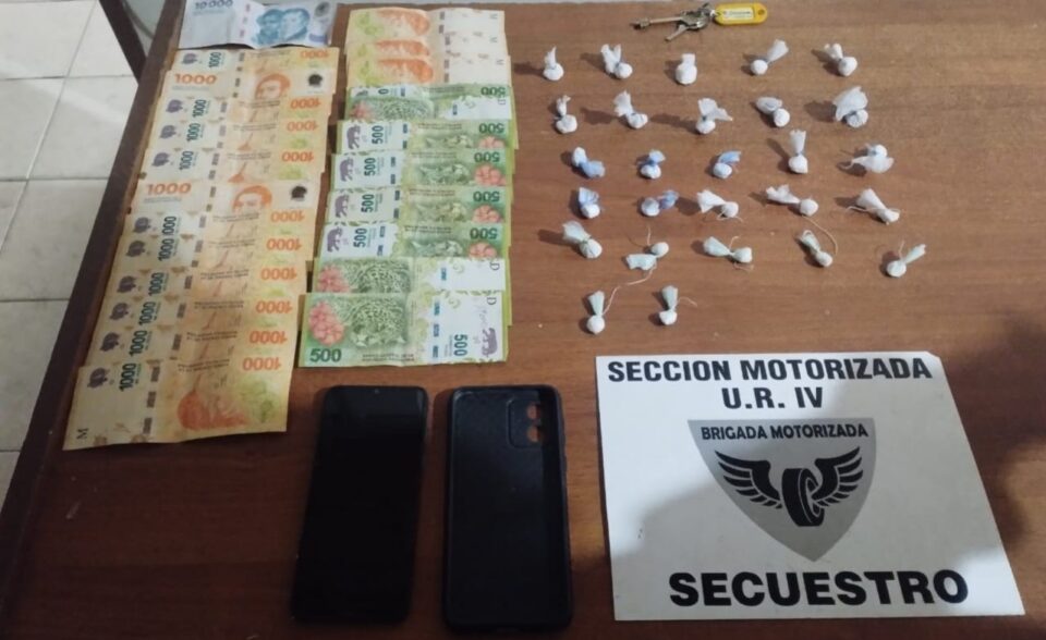 ESTUPEFACIENTES, DINERO, UNA MOTO Y CELULARES: DOS APREHENDIDOS