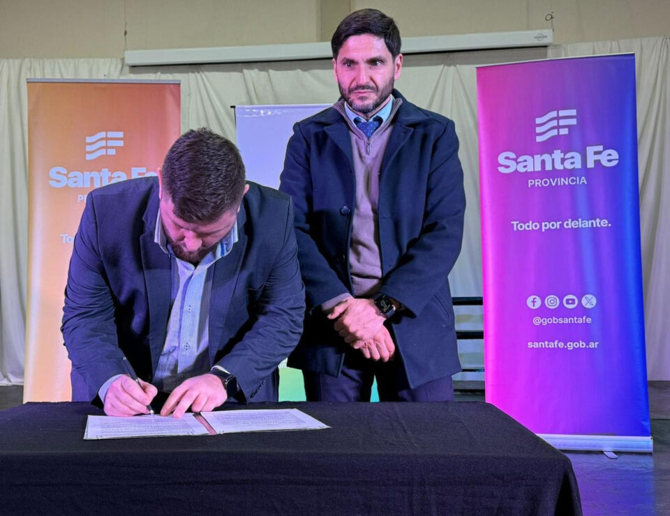 El gobernador Maximiliano Pullaro firmó este lunes convenios para la realización de obras de mejoramiento urbano en las localidades de Sunchales y Ataliva, departamento Castellanos; y Suardi, San Guillermo y Hersilia, en el departamento San Cristóbal, con una inversión del gobierno provincial de más de 550 millones de pesos.