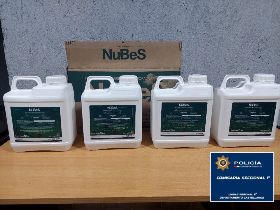 quienes tenían en su poder cuatro bidones de fertilizante de cinco