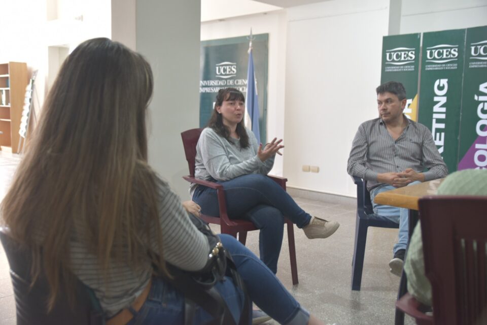 La actividad contó con la presencia de Paula Alexandroff y Georgelina Quaino, del programa Rafaela Inspira; el coordinador de la carrera de Marketing y Dirección de Negocios de UCES, Marcos Molina y las y los estudiantes.