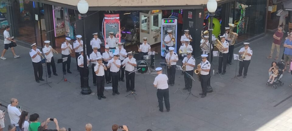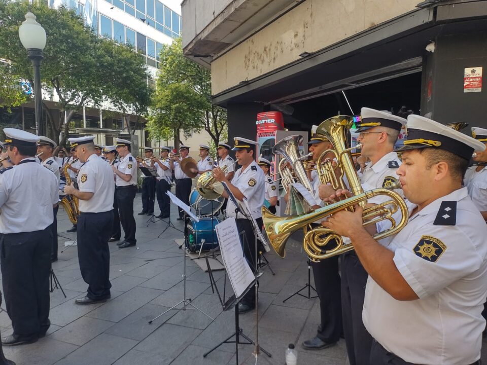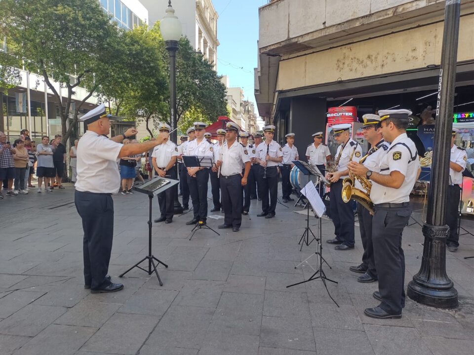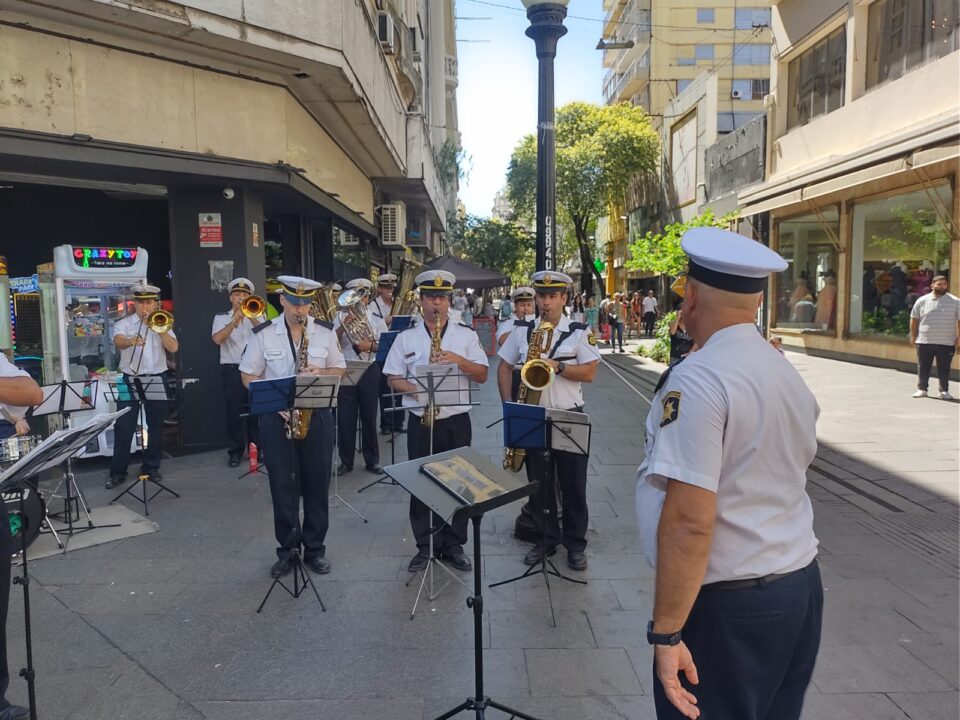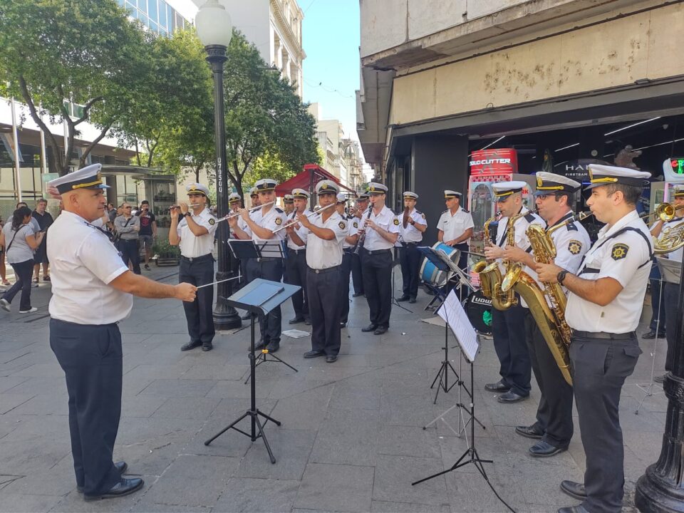 Fue en el marco de las tradicionales presentaciones que realiza paraesta época del año, sobre el cruce de las peatonales Córdoba y SanMartín, en un evento social organizado por la Policía de la Provincia deSanta Fe.En la mañana de hoy, la Banda Sinfónica Policial – Organismo Rosario,dependiente del Departamento Relaciones Policiales, bajo la direcciónmusical del Maestro Inspector Marcelo Montenegro, estuvo presente en unconcierto navideño realizado en vísperas de las fiestas de Nochebuena yNavidad, a celebrarse el próximo fin de semana.Entre su repertorio, interpretaron temas como: Les deseamos FelizNavidad, Blanca Navidad, Noche de Paz, Jingle Bells, Feliz Navidad y elBurrito Sabanero. Al pedido del público tocaron, Muchachos y Marcha SanLorenzo. Los comerciantes de la zona, ocasionales transeúntes, turistasy la comunidad rosarina toda supo disfrutar y brindarle sureconocimiento con sentidos aplausos, mientras hacían un alto en suscompras navideñas.