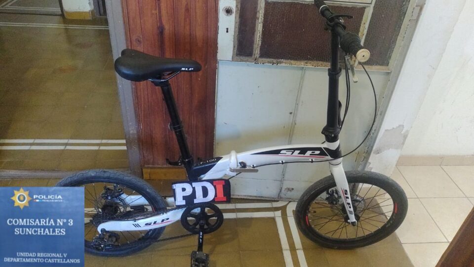 secuestro de una bicicleta marca SLP, rodado 20, plegable, color blanca