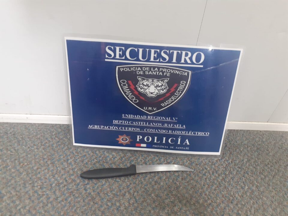 secuestro del arma blanca, y posterior traslado a sede de Comisaria 1°.