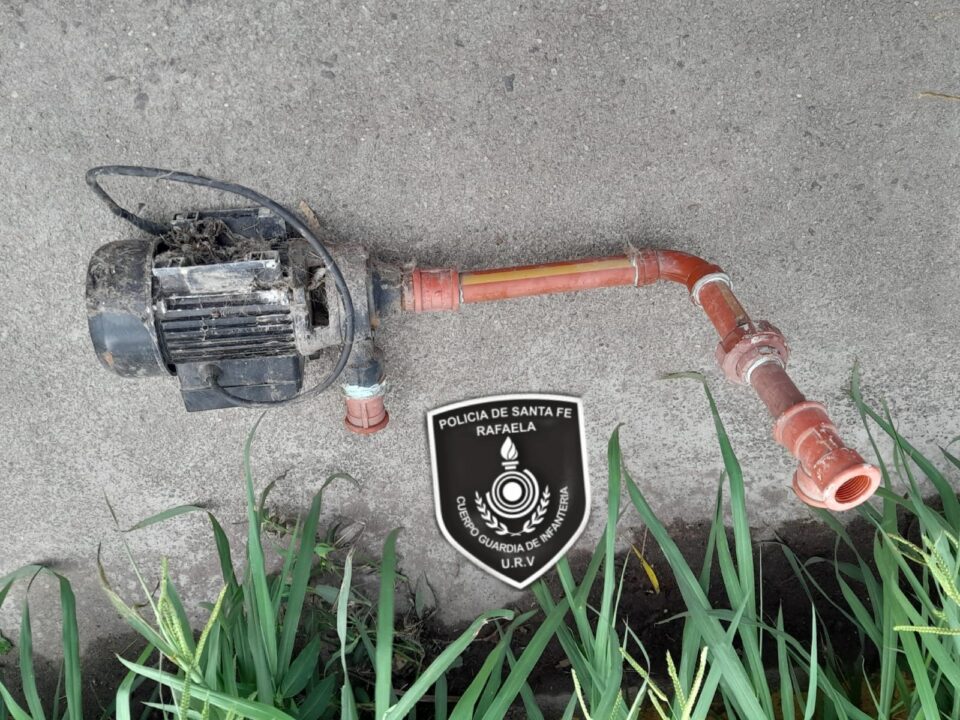 del vecino, procedieron al secuestro de una bomba centrífuga que había